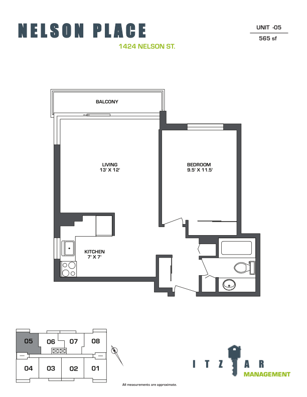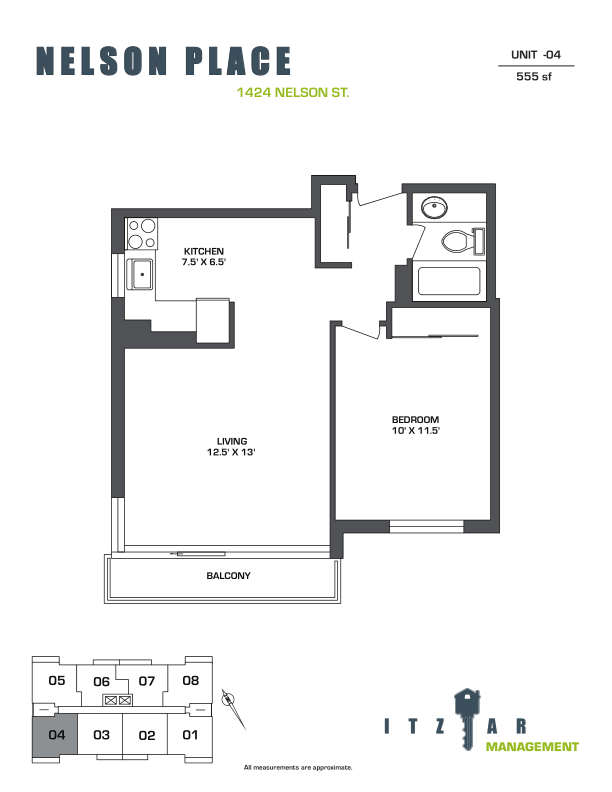 | 04 - 1 bd, 1 bath with balcony | 1 | 1 | 555 | $2,400 /MO | $1,200 | |
